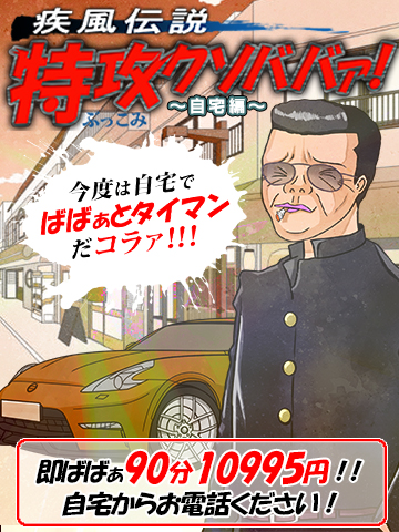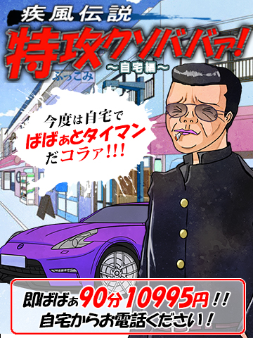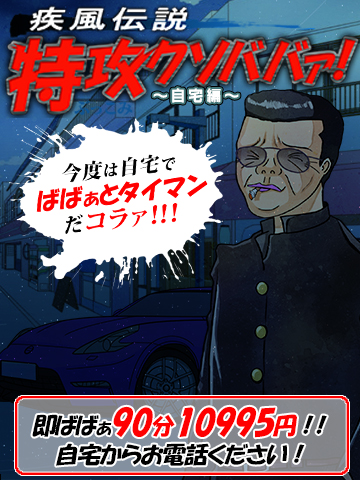 ![]() お馴染みの 『特攻クソババァ!』 自宅で使えないのって 声が多かったので 自宅でも開催しちゃうぜ!! その名も・・・ ☆特攻クソババァ~自宅編~☆ そのまんま(*´∀`) 【利用方法は・・・】 特攻クソババァと一緒☆ 自宅から電話する ⇩ すぐ行けるばばぁで遊ぶ ⇩ これだけ╭( ・ㅂ・)و ばばぁを選んで 『80分コース以上1,000円割引!!』 ばばぁをお任せなら 『さらに+10分延長!!!』 破格!!! 多分大丈夫だと思うけど、 もしもすぐいけるばばぁが いない時は、、、 さーせん!! ばばぁが空くまで 待ってくだされm(_ _)m ![]() 受付時に (ぶっこみ) 『特攻の宅』 唱えてくださればデッパツするので 気合い入れて待っとけよ! ※ガス欠上等!! ※ハマの人以外は値引きぁなしだァ! ※他のイベントとの併用不可ァ! |